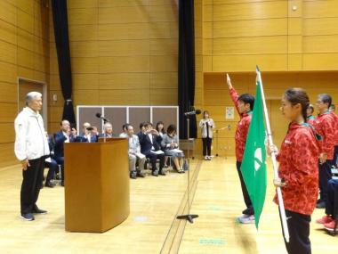 福田知事は「地域や職場、学校などで励んでこられた練習の成果を存分に発揮し、県民をはじめとした多くの方々に、スポーツを通して感動を届けていただくことを期待しております」と選手たちへ激励の言葉を送りました。