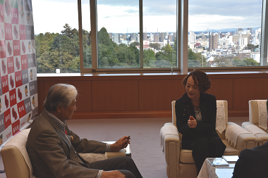 知事との歓談では、冒頭でとちぎ未来大使のピアニスト新井 啓泰(あらい のりやす)さんの伴奏で「道化師のソネット」を歌い、見事な歌唱を披露しました。