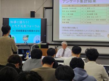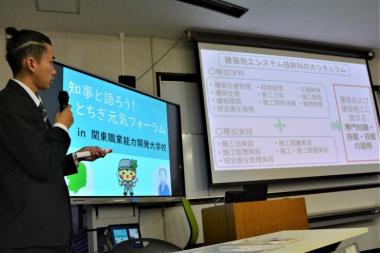 今回は、関東職業能力開発大学校において、約40名の学生の皆さんと福田知事が意見交換を行いました。