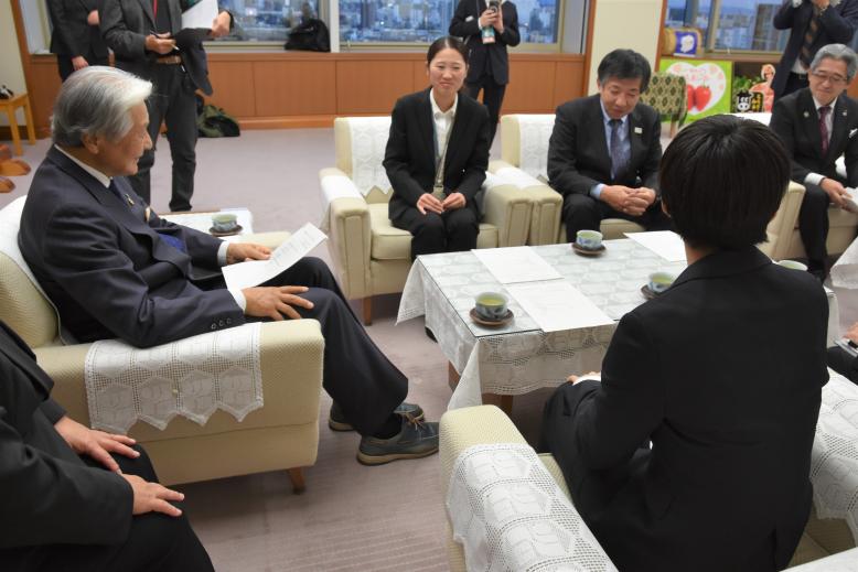 知事からは「これからも日本代表として大いに活躍してください。県産のおいしいものを用意して、また激励します。」とエールが送られました。