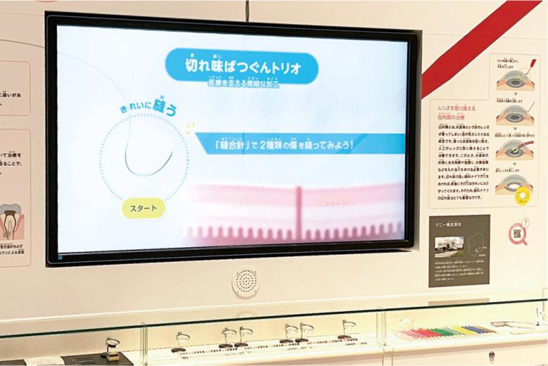 タッチパネルで眼科用メスなどを使った治療を疑似体験