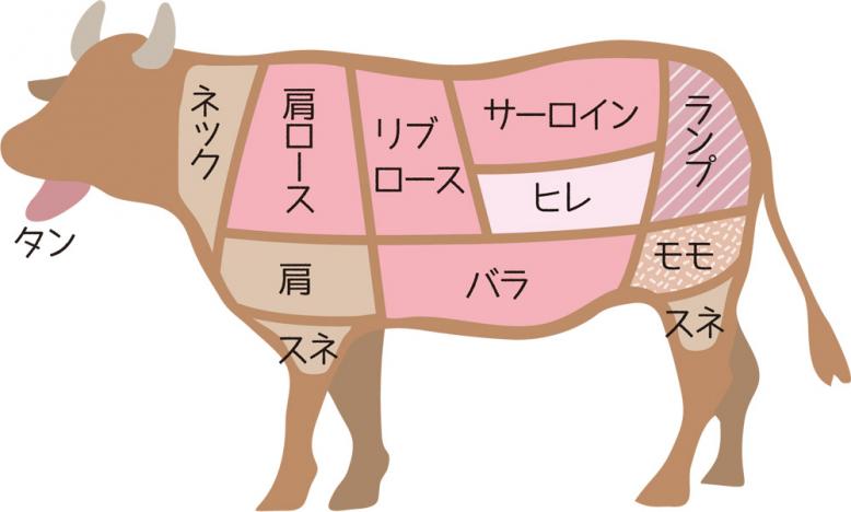 牛肉は部位ごとに、味わいや食感の違いが楽しめます。脂が多くジューシーな、焼き肉で人気の「カルビ」はバラの部分です。