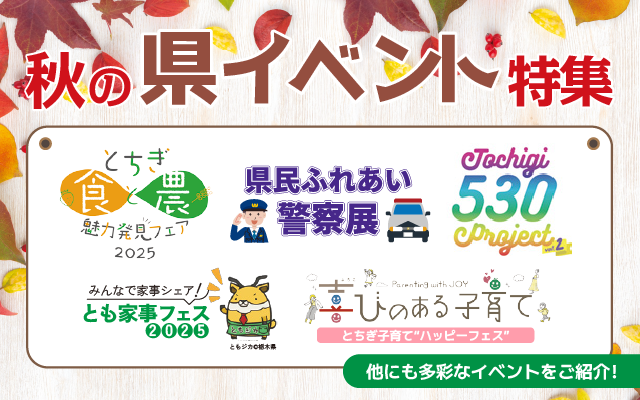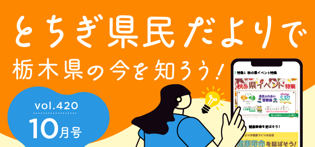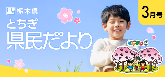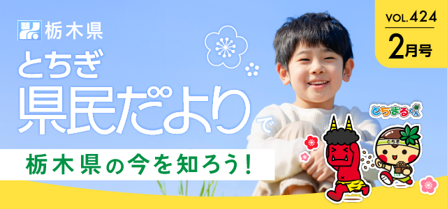 「とちぎ県民だより」は、毎月新聞折り込みで県内の各家庭にお届けしている県政広報紙です。写真やイラストをまじえ県政の話題を分かりやすくご紹介しています。