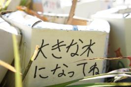 また、11月4日は、同社社員、烏山聖マリア幼稚園及び烏山保育園が共同で、約0.07haに、トチノキ、ケヤキ、カエデ及びヤマザクラを合計210本を「バイオブロック工法」で植栽しました。また、併せて、同社社員により、既に植栽された区画の下刈りを行いました。