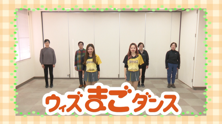 県内のプロスポーツチームのチアチームが通いの場等を訪問し、地域のみなさんと一緒にウィズまごダンスを踊っている様子を撮影しています。