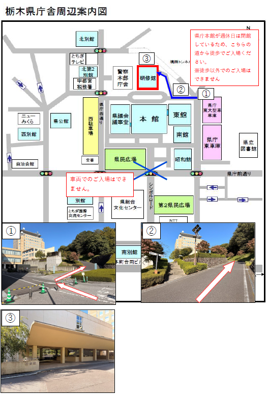 栃木県庁研修館(宇都宮市塙田1-1-20) 案内図(PDF:617KB)