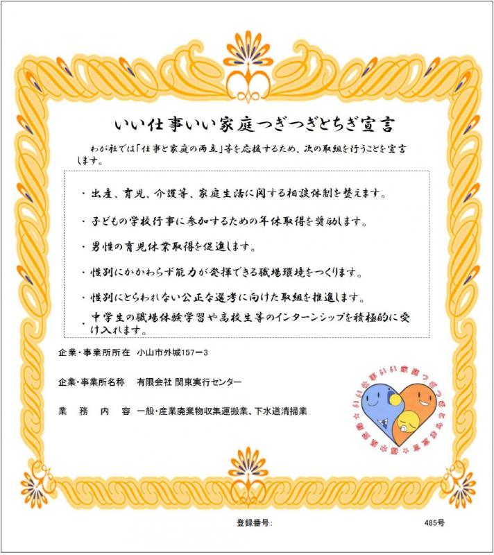 ホーム > 産業・しごと > 雇用・労働 > 労働環境 > 「いい仕事いい家庭つぎつぎとちぎ宣言」事例 > 「いい仕事いい家庭つぎつぎとちぎ宣言」事例(小山) > 有限会社関東実行センター