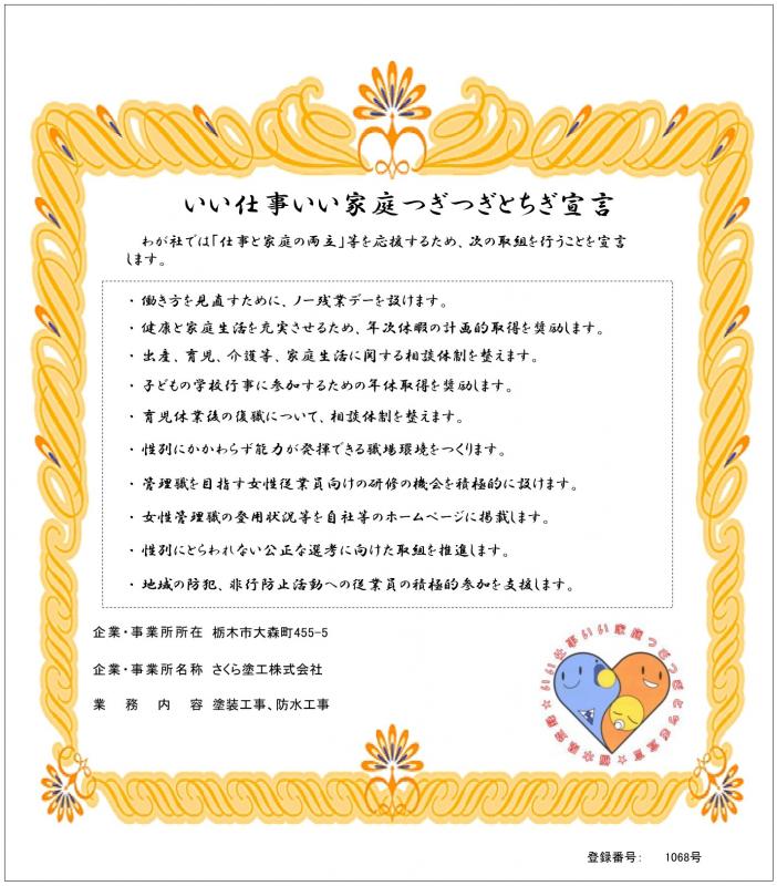 ホーム > 産業・しごと > 雇用・労働 > 労働環境 > 「いい仕事いい家庭つぎつぎとちぎ宣言」事例 > 「いい仕事いい家庭つぎつぎとちぎ宣言」事例(小山) > さくら塗工株式会社