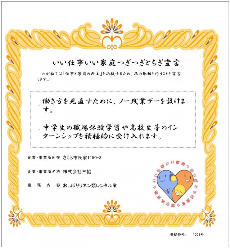 ホーム > 産業・しごと > 雇用・労働 > 労働環境 > 「いい仕事いい家庭つぎつぎとちぎ宣言」事例 > 「いい仕事いい家庭つぎつぎとちぎ宣言」事例(宇都宮) > 株式会社三協