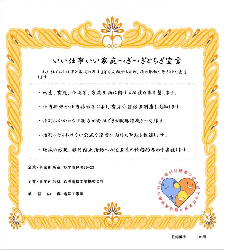 ホーム > 産業・しごと > 雇用・労働 > 労働環境 > 「いい仕事いい家庭つぎつぎとちぎ宣言」事例 > 「いい仕事いい家庭つぎつぎとちぎ宣言」事例(小山) > 森澤電機工業株式会社