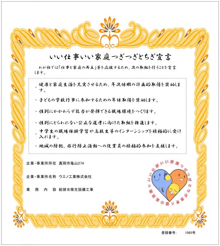 ホーム > 産業・しごと > 雇用・労働 > 労働環境 > 「いい仕事いい家庭つぎつぎとちぎ宣言」事例 > 「いい仕事いい家庭つぎつぎとちぎ宣言」事例(宇都宮) > ウエノ工業株式会社