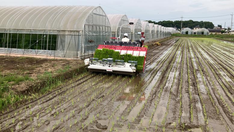 研修会では、県からスマート農業推進方針やとちぎグリーン農業について説明を行ったほか、BASFジャパン株式会社から衛星画像とAI分析による栽培管理支援システム(ザルビオフィールドマネージャー)の紹介がありました。さらに、ヤンマーアグリジャパン株式会社から「ザルビオフィールドマネージャー」を活用した「可変施肥田植」の実演も行われ、参加者たちは熱心に見学していました。