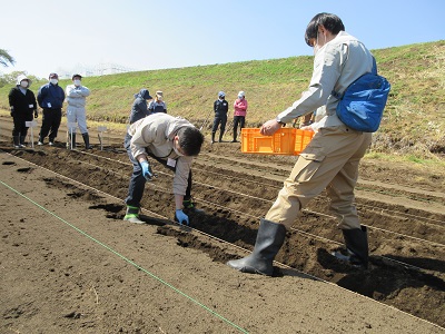 じゃがいもの種いも植え付け