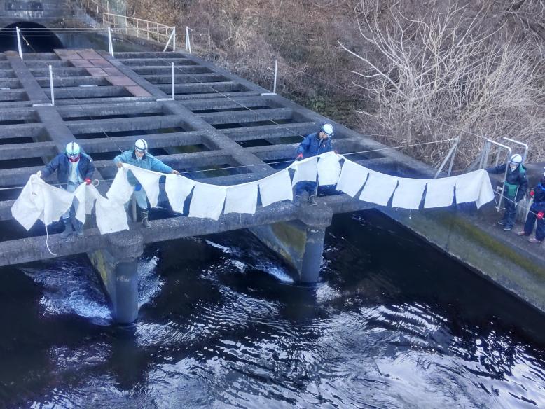 オイルフェンスの設置(東京電力リニューアブルパワー株式会社西鬼怒川発電所) |