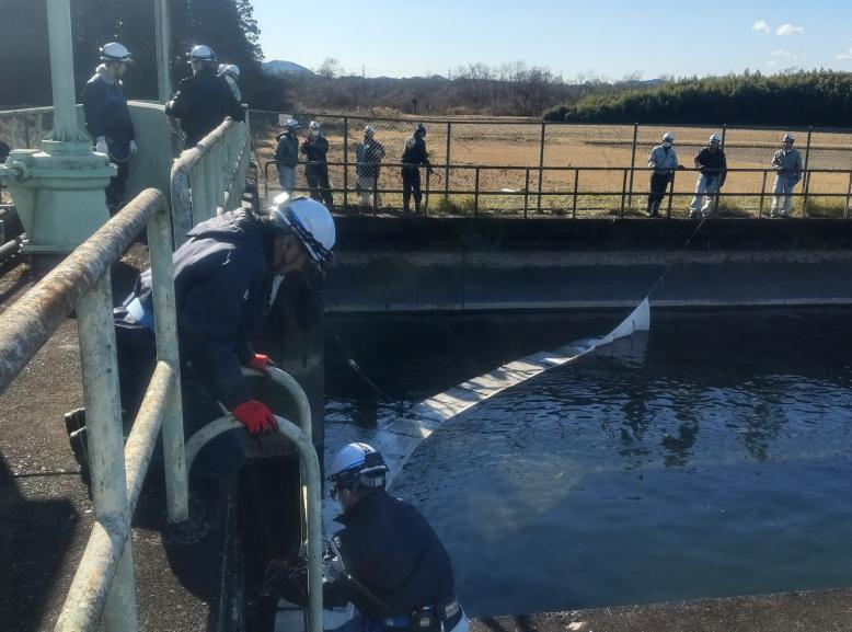 塩谷発電所(東京電力リニューアブルパワー株式会社)にて油流出事故が発生したと想定し、鬼怒川下流に位置する風見発電所(栃木県企業局)や西鬼怒川発電所(東京電力リニューアブルパワー株式会社)での情報伝達、河川巡視及び油流入防止対応などの訓練を行いました。
