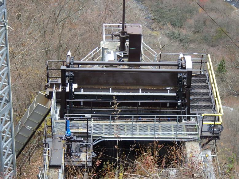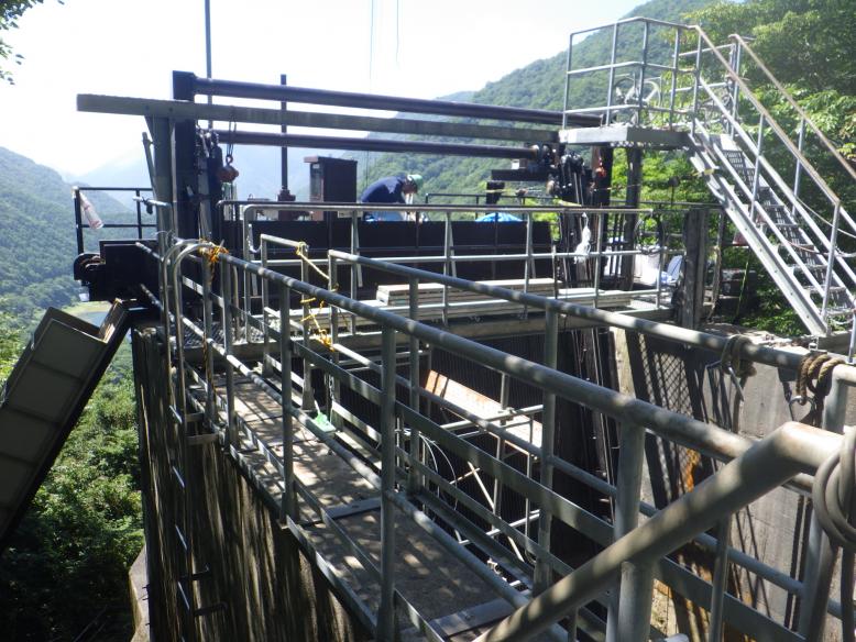上水槽排砂ゲート扉体体据付 上水槽排砂ゲート巻揚機据付