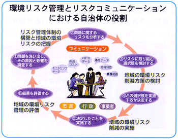 PRTR制度により化学物質の適正管理を進めるためには、県民と企業、そして行政とが化学物質のリスクに関する情報を共有し、理解と信頼関係を築き、効果的にリスク低減を図る「リスクコミニュケーション」を進めることが重要です。