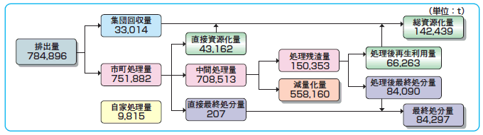 このため、生産、流通、消費、廃棄等の社会経済活動の全段階を通じて、汚染物質や廃棄物の発生を抑制し、資源の循環的な利用を進めるとともに、廃棄物の適正処理を図ることなどにより、自然の物質循環に与える影響を極力抑えた「環境への負荷の少ない循環型の社会づくり」を目標とする。