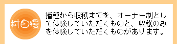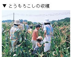 じゃがいも、とうもろこし、米、さつまいも等の栽培と収穫。