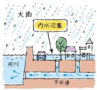 洪水による災害は、川から水が溢れたり、堤防が決壊して発生する外水氾濫と、街中の排水が間に合わず、地下水路などから水が溢れ出したりする内水氾濫があります。