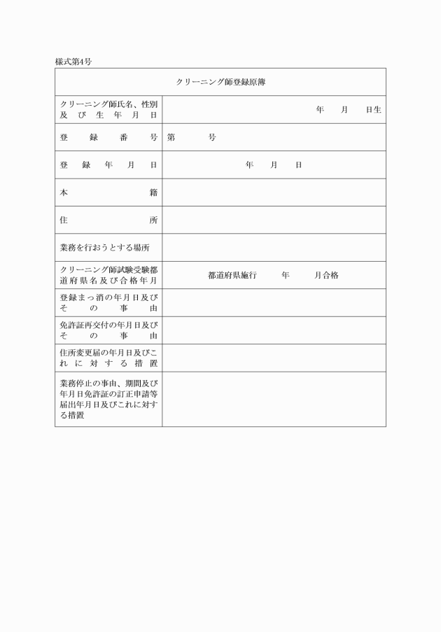 10 規則第4条の規定によるクリーニング師免許申請書 | |