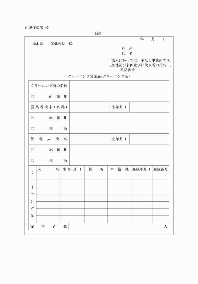 1 法第5条第1項の規定によるクリーニング営業届(クリーニング所) | |