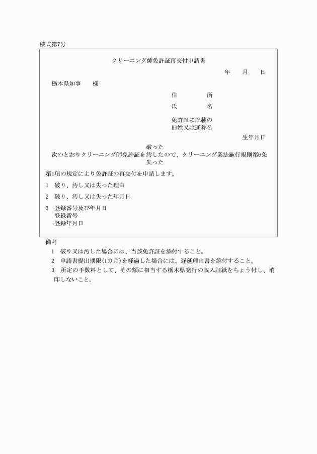 11 規則第6条第1項の規定によるクリーニング師免許証再交付申請書 | |