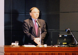 基調講演は「国会等移転と環境共生型モデル都市について」と題し、東京大学先端科学技術研究センター教授の大西隆さんに御講演をいただきました。最近の国会等移転を巡る国の動きや北東5県で昨年策定された「北東地域首都機能移転モデル都市構想」における環境との共生の可能性等についてお話いただきました。